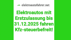 Elektroautos mit Erstzulassung bis 2025 fahren Kfz-steuerbefreitVon Daniel Sonne / 24. März 2025 Elektroautos mit Erstzulassung bis 2025 fahren Kfz-steuerbefreit!